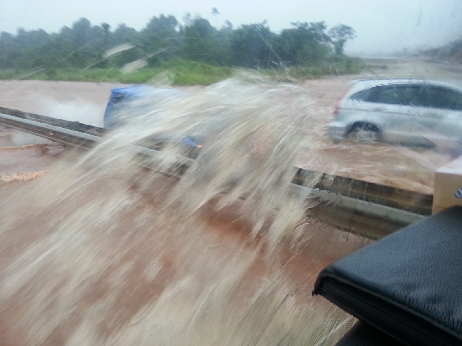 | Keadaan air yang merentasi jalan di LPT dekat Gebeng |